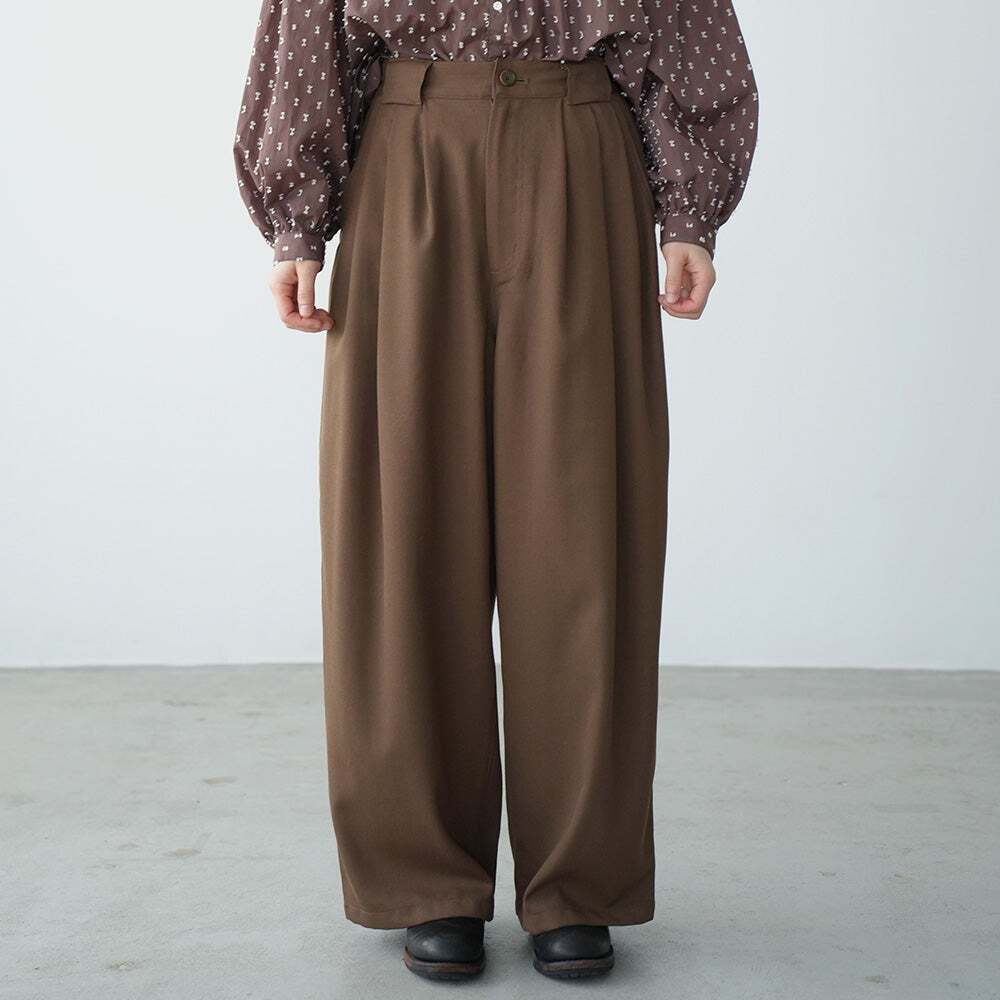 ウールミックス スリータック ワイドパンツ
